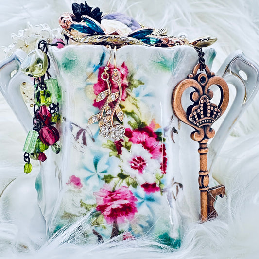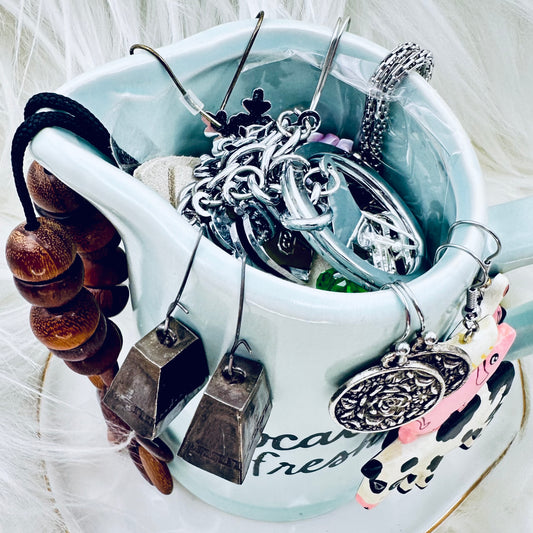 Each piece is curated or handmade with love, blending vintage treasures, thrifted finds, and whimsical creations. Our jars and bundles are filled with charm, surprise, and a touch of fairy-tale magic