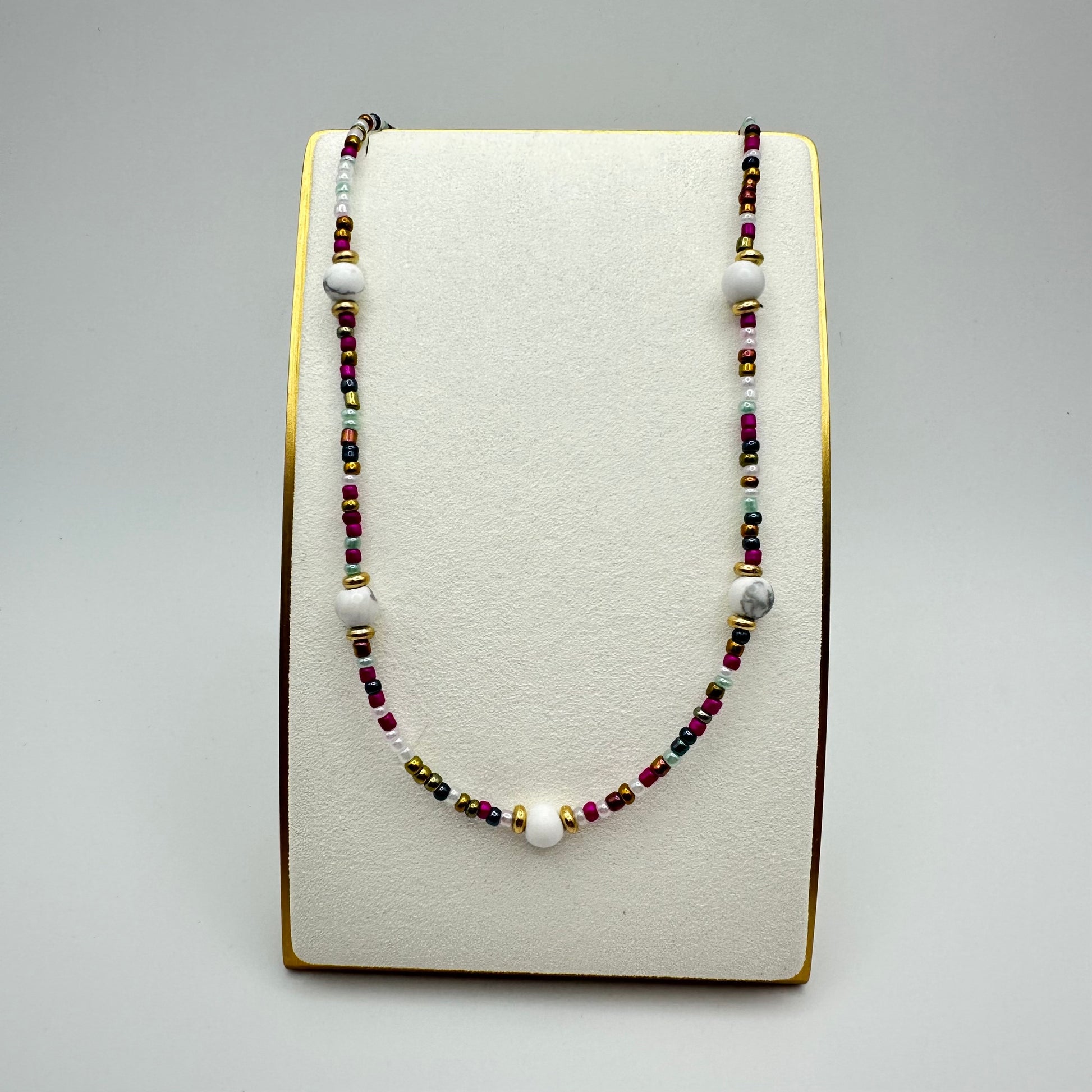 Meticulously hand-strung (no bead spinner here!), the Threaded Whimsy Beaded Necklace is a celebration of texture, color, and care. With a playful yet polished mix of vibrant seed beads and soft white marble rounds, this necklace is a perfect balance of bold and earthy.