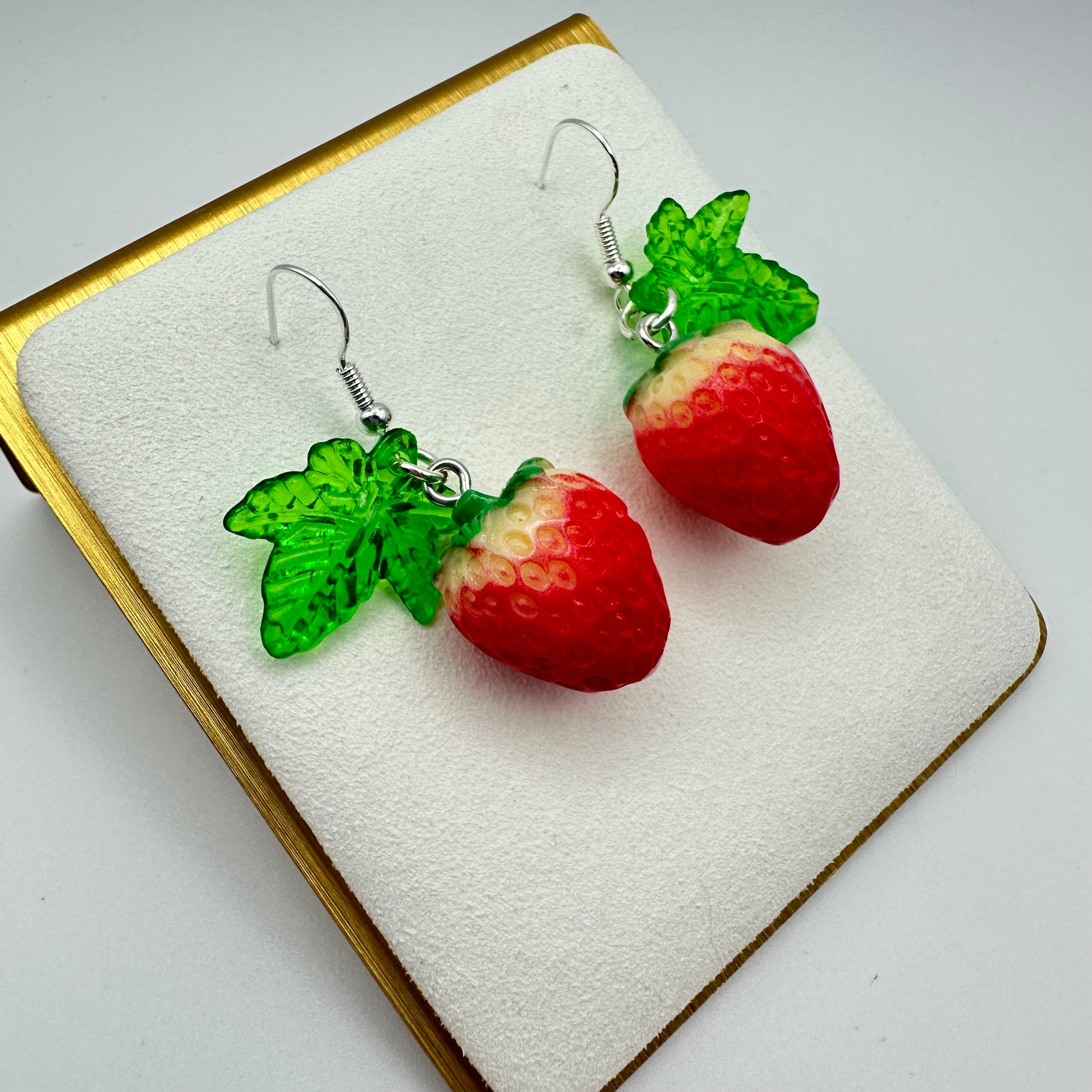 Sweet, bold, and berry adorable โ€” these handmade earrings feature juicy acrylic strawberry charms paired with translucent green leaf beads. Lightweight and fun, theyโ€™re perfect for fruity summer looks, playful outfits, or fairycore picnics in the sunshine. Handmade in the PNW with whimsical charm and a love for tiny details!