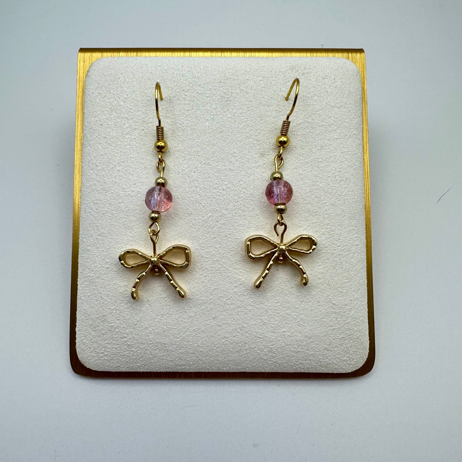 Simple, sparkly, and oh-so-sweet. The Sugar Bow Sparkle Earrings feature shimmering pink glass beads paired with delicate gold bow charms for a dainty, dreamy finish. These earrings are perfect for pastel lovers, soft girl aesthetics, or anyone who wants just a little sparkle to brighten their day.