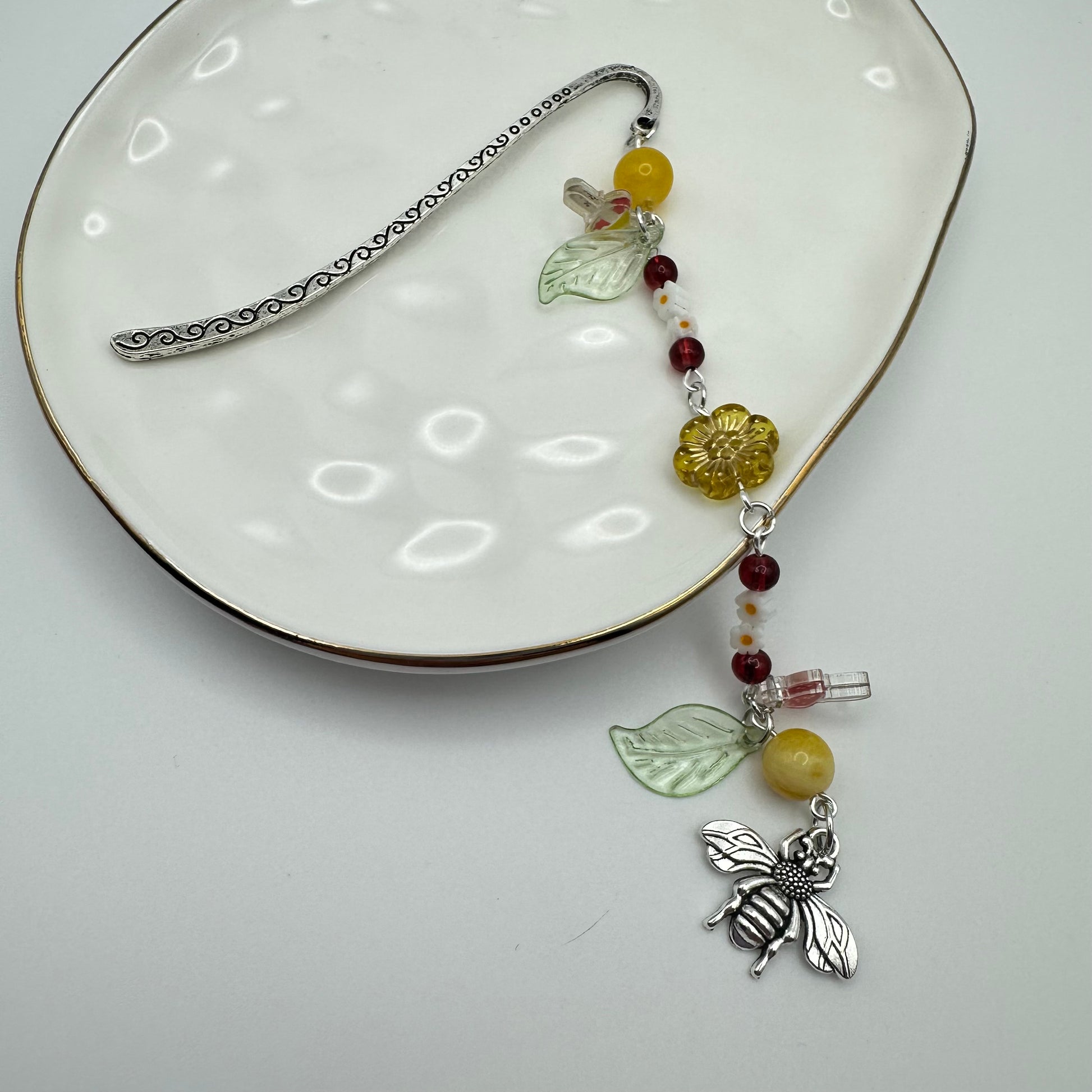 The Golden Nectar Bloom Bookmark is a little slice of garden magic. Featuring rich honey yellows, cherry reds, soft greens, and a silver bee charm, this woodland-inspired piece brings a buzz of charm to your latest read. A tiny mushroom and floral details add a playful, cottagecore touch.