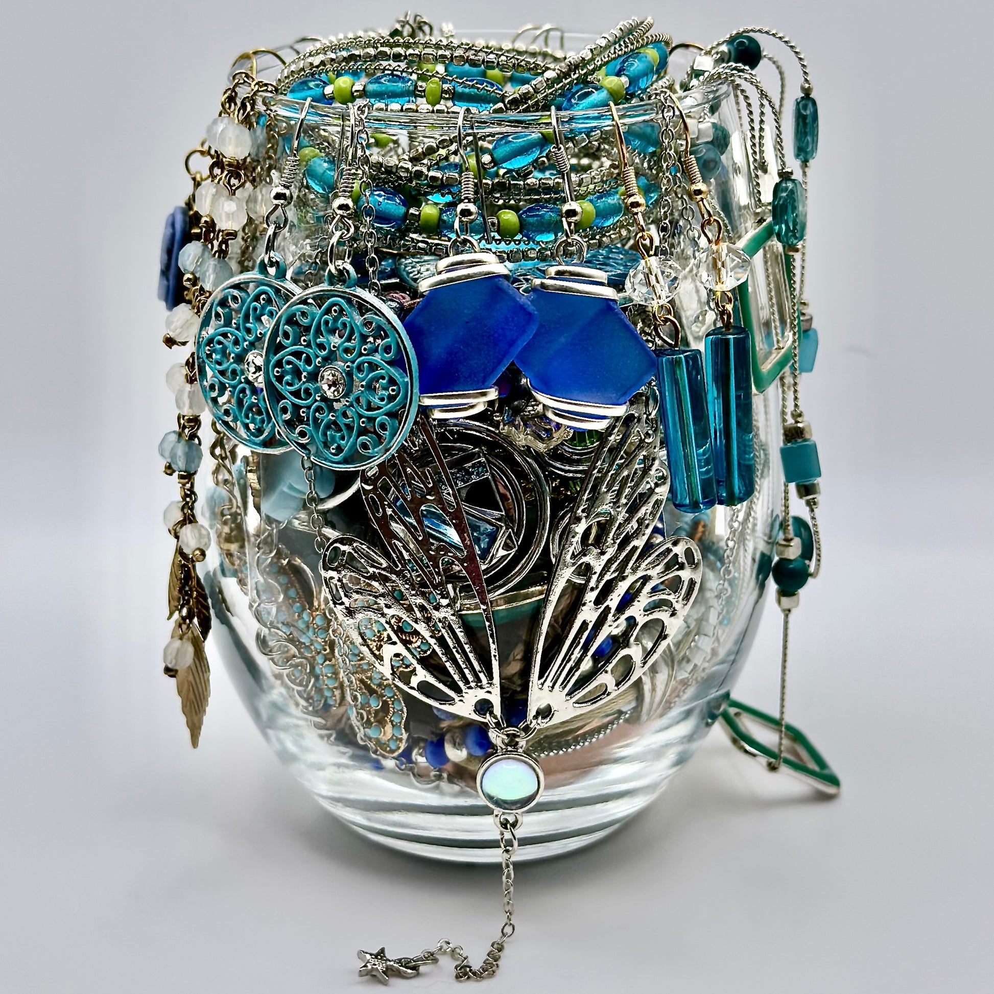 This jar holds 51 total pieces of jewelry inspired by glimmering water, fluttering wings, and the hush of a fairy-touched forest. Cool tones of silver, turquoise, and sky blue create a serene, enchanted glow β a perfect reflection of the peaceful beauty of the glade π§π¦β¨