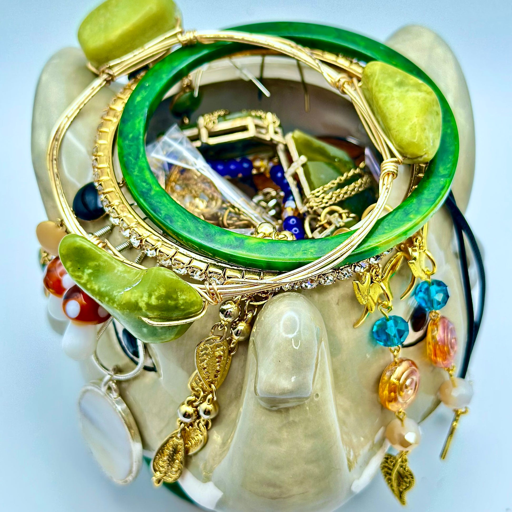 Inside you will uncover earrings, bracelets, necklaces, and rings π All pieces are wearable, in good shape, and packed with love π These jars take time to curate β³ and not every piece may be your exact style but that is part of the fun of the mystery πͺ