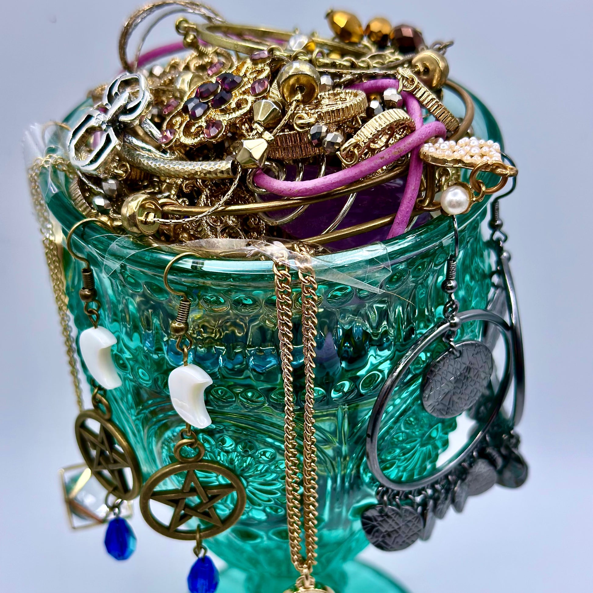 A goblet of mystical sparkle ๐ช๐ท๐ Each jar is brimming with vintage and pre-loved jewelry โจ plus a handmade earring set created by me ๐