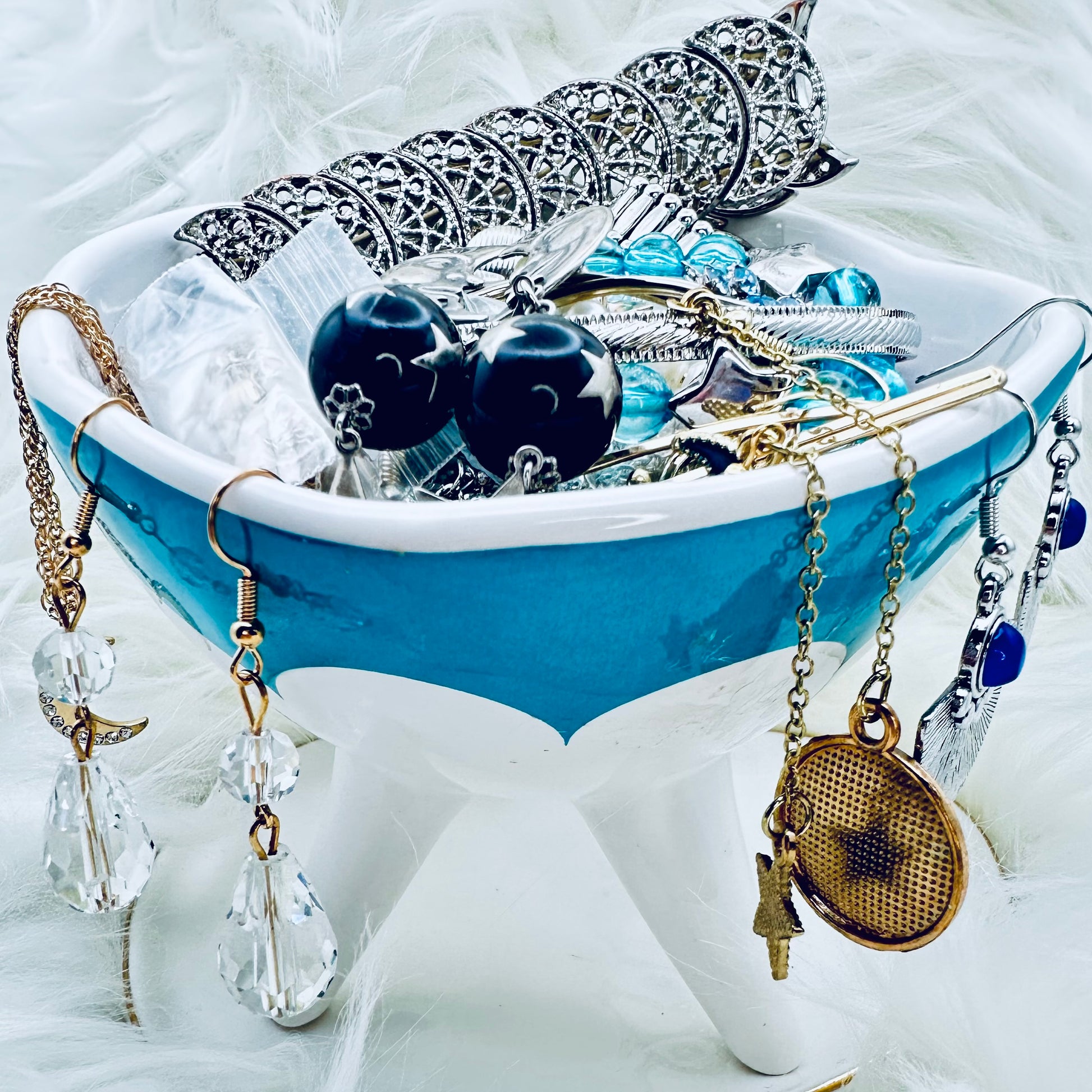 Inside you will discover earrings, bracelets, necklaces, and rings 🌟 All pieces are wearable, in good shape, and packed with love 💕 These jars take time to curate ⏳ and not every piece may be your exact style but that is part of the fun of the mystery 🪄